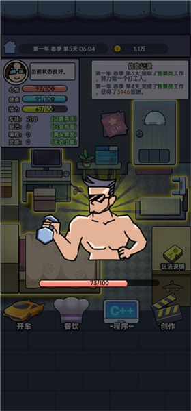 玩家需要在有限的时间内合理分配学习、工作、娱乐的时间,以挣取更多资金,同时维持各项属性的平衡,考验玩家的时间规划能力与策略思维。