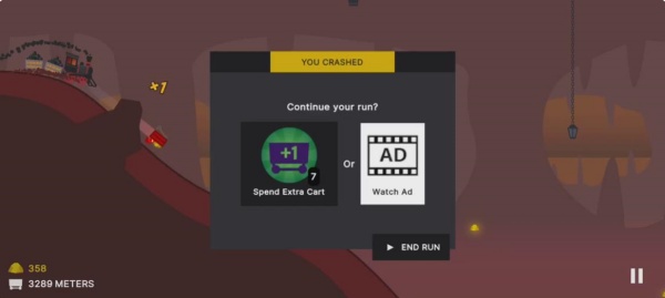 2、在高速奔跑的同时收集金币与宝石,用于购买矿车升级、强化装备或解锁特殊技能。
