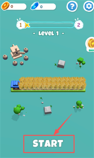 1、游戏初始界面中央设有红框白底的START开始按钮,顶部清晰显示金币钻石储量与"Level 1"进度条,点击按钮即可开启首关挑战。