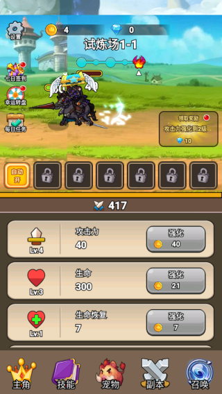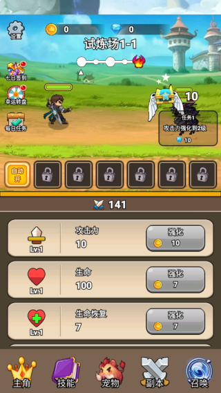 1、游戏初期,尽快理解“自动打怪→获取金币→升级属性/试炼场→提升效率”这个核心循环,这是快速发展的基础。