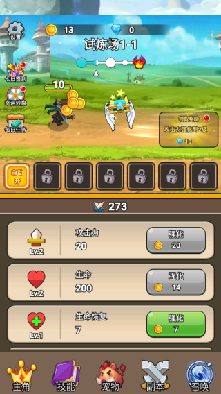 1、你的角色会在主界面自动持续地打怪,即使你退出游戏,角色也会自动积累经验和金币。