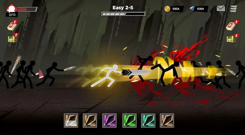 4..多种武器、技能、道具可供选择,个火柴人都有不同的特色技能,展示不同的战斗策略。