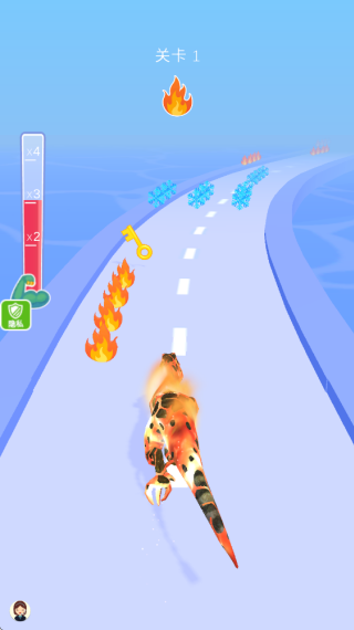 1.使用手指在屏幕上滑动即可控制恐龙的左右行动,帮助恐龙去收集更多火焰元素吧!