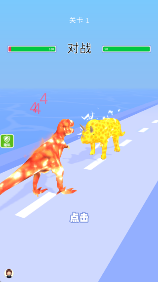3.决战机制:抵达关卡终点后进入强制战斗环节,通过点击屏幕即可让己方恐龙去攻击对手,点击速度越快攻击频次就会越多。