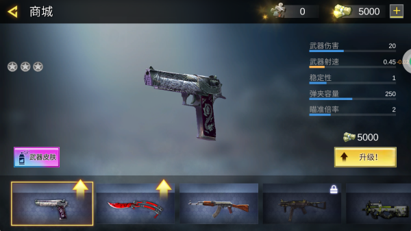 3、升级枪械时,初期优先提升弹夹容量与稳定性,弹夹容量增加减少换弹频率,稳定性提升能提高移动射击的命中率。