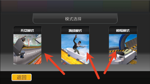 1、游戏开始前,选择自己心仪的模式,并从各种奇形怪状的载具(如带轮子的床、大浴缸、餐桌等)中选择一个你喜欢的,每种载具的驾驶体