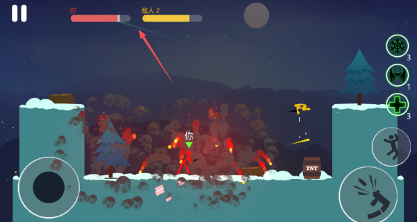 3、界面顶部实时显示敌我血条,击碎场景中的医疗箱可回复生命值,巧妙利用爆炸桶等环境道具能瞬间扭转战局。