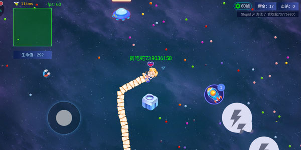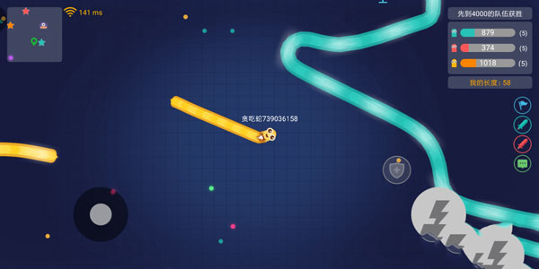 当你的长度足够,就可以在地图上实现以大欺小的虐杀了。你可以把其他小蛇圈在你的肚子里,等他自己撞死,轻松获得击杀和豆豆。