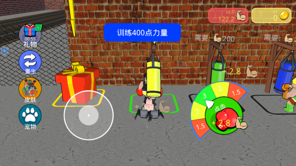 3、通过胜利积累资源,升级拳手力量、速度属性,解锁新角色外观与搞笑宠物伙伴,提升战力与趣味性。