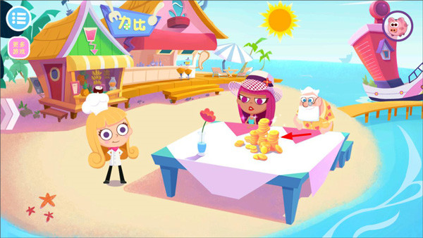3、在色彩斑斓的海岛场景中,与各类游客展开趣味互动,增添游戏的趣味性。