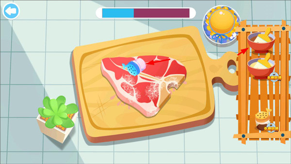 3、点击开始制作,首先对牛排进行捶打处理,以使其变得更嫩。
