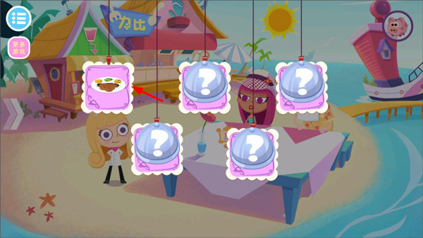 1、启动《美食兄妹海岛餐厅》游戏,选择你的角色,并邀请客人到指定的位置。点击客人的需求,进入菜谱页面。