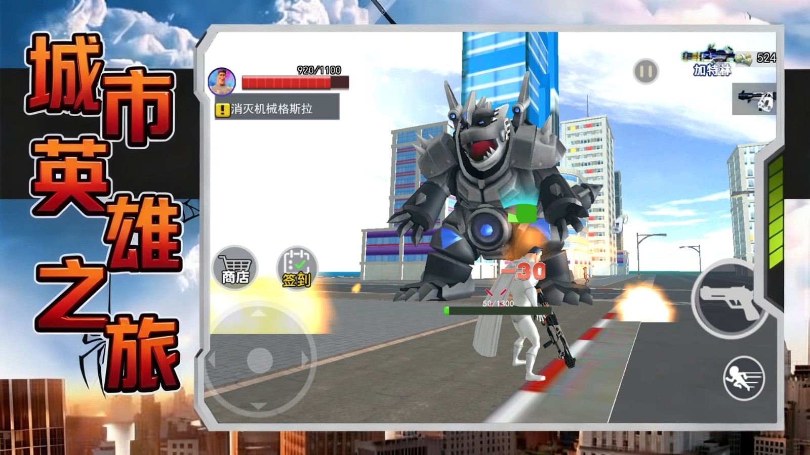 1、打造多元超能力战斗系统,飞天、激光、能量冲击等能力各具特色,让大家体验掌控城市级力量的爽感。