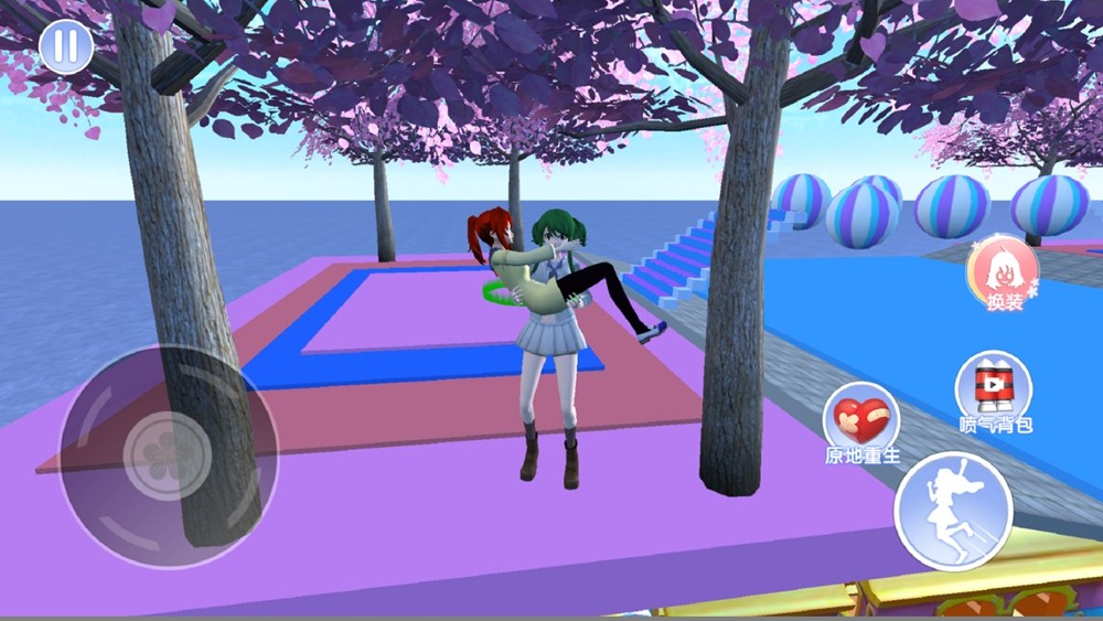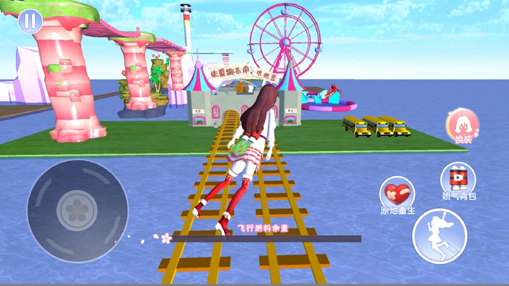 3、进入樱花游乐场跑酷地图,操控角色通过滑动屏幕,躲避沿途的各类障碍,持续向前奔跑。