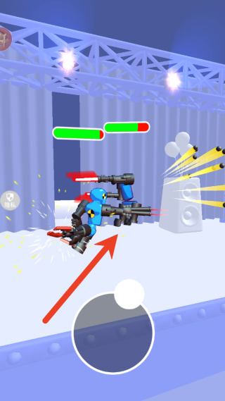 2、完成组装后即可进入对战模式,通过虚拟摇杆精准控制机器人移动走,配合右侧技能按键组合施展连招,在激战中击败对手。