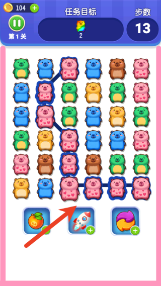 2、连接更多同色萌宠可以形成特效道具,帮助一次性消除大量方块。