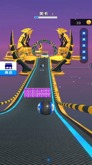 1、通过简单的左右滑动操作,控制球球在跑道上移动避开障碍物。