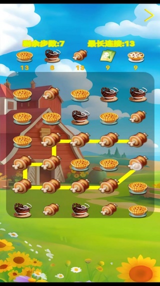 2、需在限定步数内达成目标分数,将场景中所有分散的蛋挞图案进行完整连接。