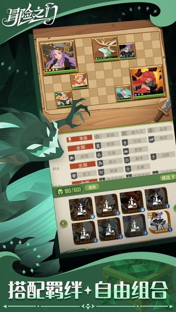 在冒险之门中,玩家可以根据战术需求自由搭配英雄。灵活选择不同角色的组合,制定多样化的攻击和防守策略,力求打造出一支无敌的阵容。每个玩家都可以创造出自己独特的战斗风格,让战术的多样性为你带来胜利的机会。