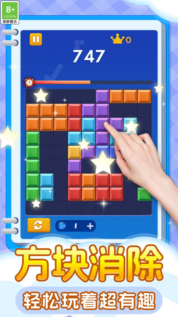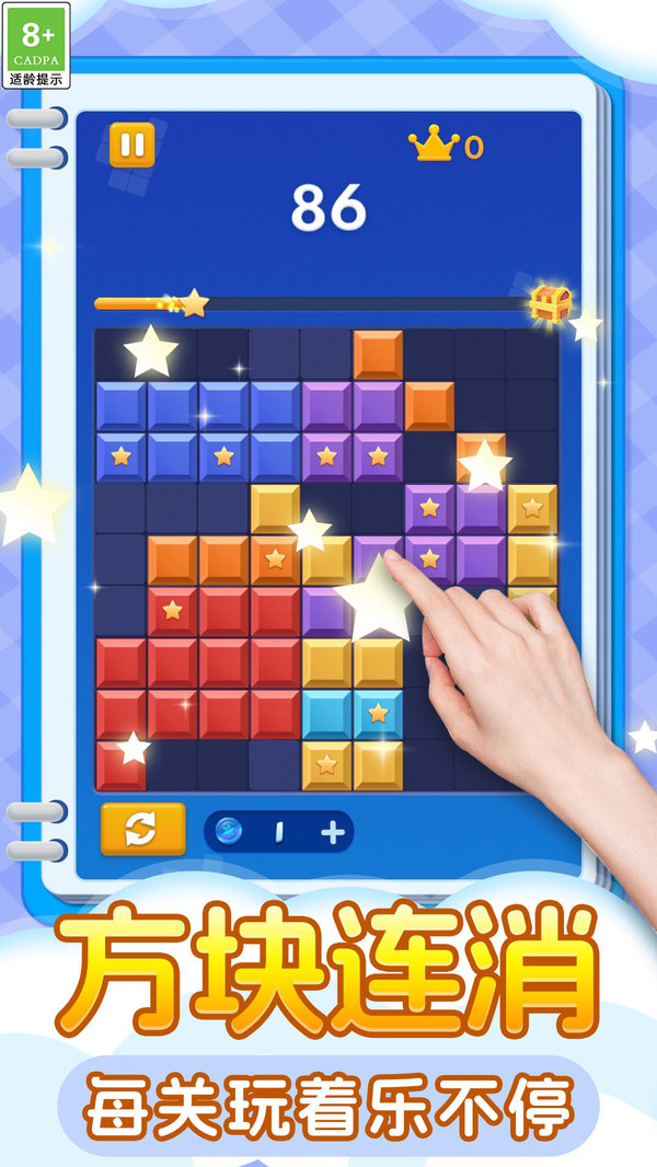 1、消除过程兼具休闲与益智属性,既无需高强度操作,又需思考方块摆放策略,适合不同需求的玩家放松或锻炼思维。