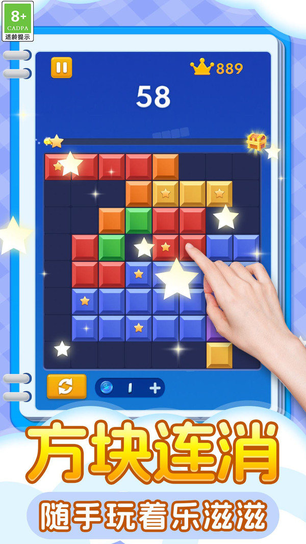 2、游戏反馈积极,方块消除时的视觉效果与成就感,能让玩家在随手操作中获得愉悦体验,缓解日常压力。