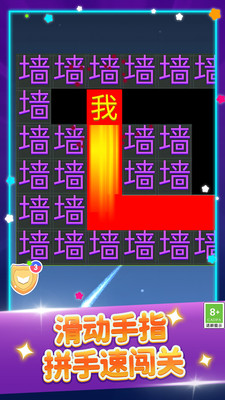 1、进入游戏后,玩家首先出现在起点位置,需要通过滑动屏幕控制“我”字角色开始移动,初步观察由汉字墙体构成的迷宫布局,并尝试向不同