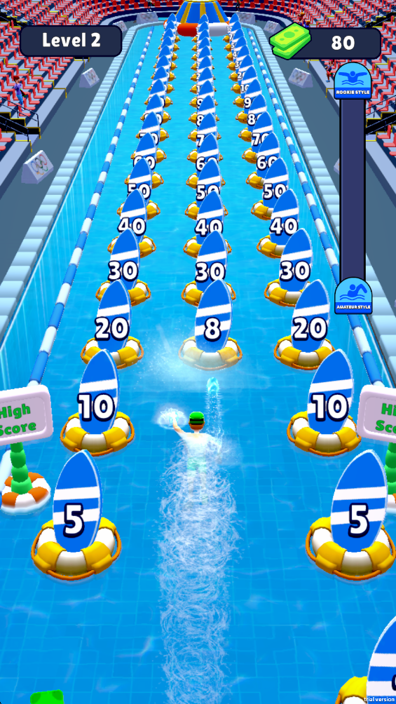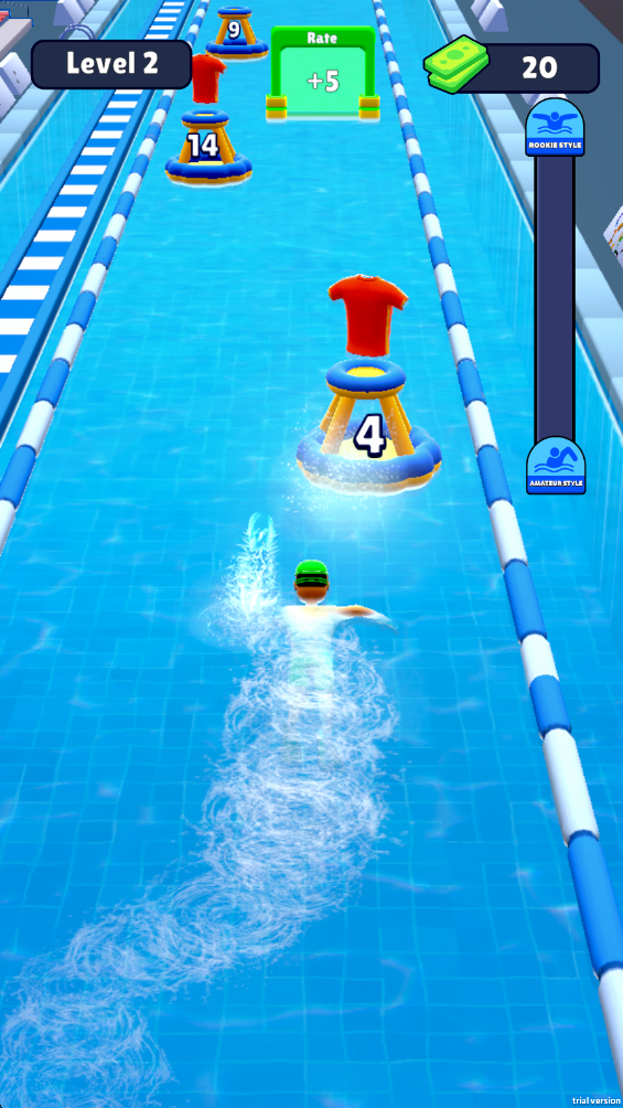 游泳冲刺(Swimmer Rush)是一款超刺激的游泳竞速手游!玩家将成为一名顶尖泳将,挑战全球激烈泳池赛。指尖躲障碍、拼速度,每场都紧张到心跳。高清泳池画面和沉浸音效,给玩家带来沉浸式的游戏体验,就像真在水里扑腾!还能和朋友比排名,冲榜拿高分。想体验水下冲刺的爽感?快来,下一个冠军就是你!