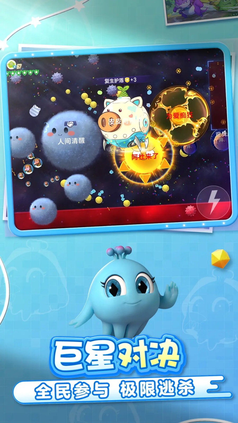 球球大作战官方渠道包体下载:是比较火爆的团队竞技游戏,卡通的游戏画风,简单的吞噬玩法,轻而易举的就能上手,而且游戏的节奏非常快,每局只要几分钟的时间,还给你们提供了超多玩法模式哦,不同模式的规则是不一样,游戏体验也不同哦!