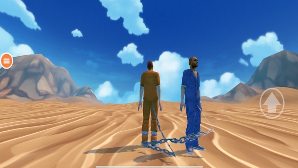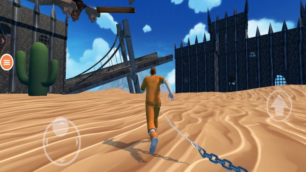 4、操控角色沿着相对平坦的沙面奔跑,利用方向按钮灵活调整跑动方向,注意锁链的长度限制,避免因过度拉扯影响移动效率。