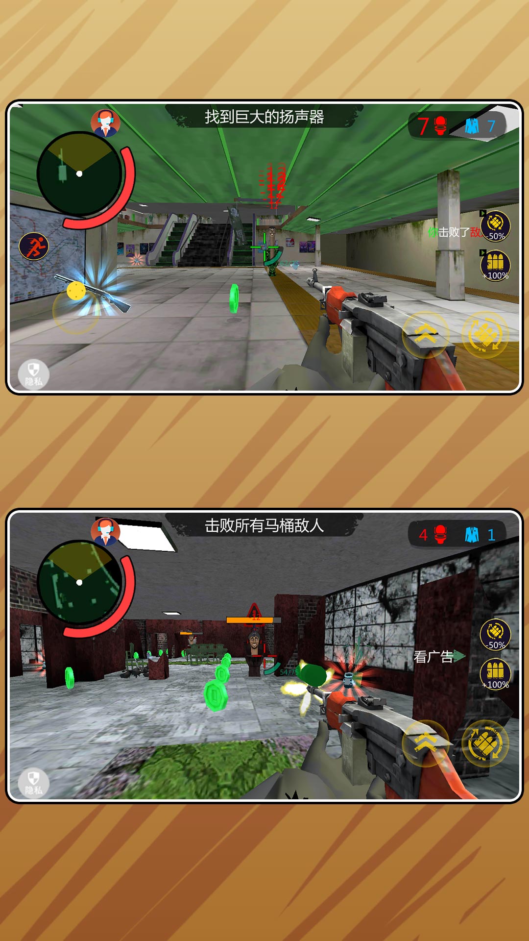 1.目标驱动关卡:每张地图均设定明确任务——清除所有邪恶马桶人,玩家需在复杂地形中追踪敌人踪迹,完成区域清扫。
