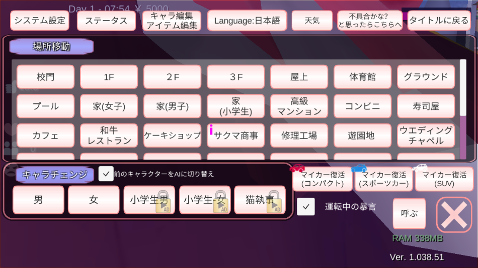 (不支持以下角色:猫管家、便利店店员、游乐园工作人员、幼儿园、动物、久沼秀子。)
