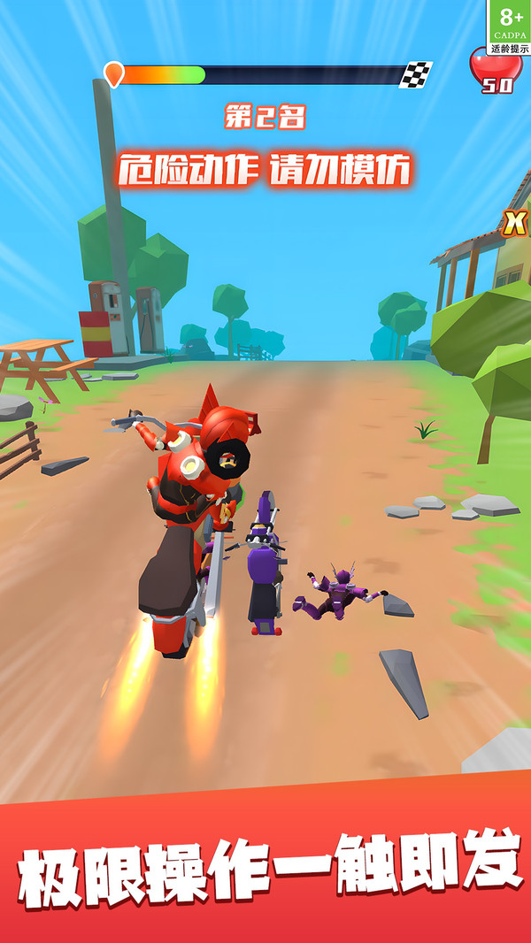 4、做出各种特技动作,逐渐提高你的速度,超越对手们。