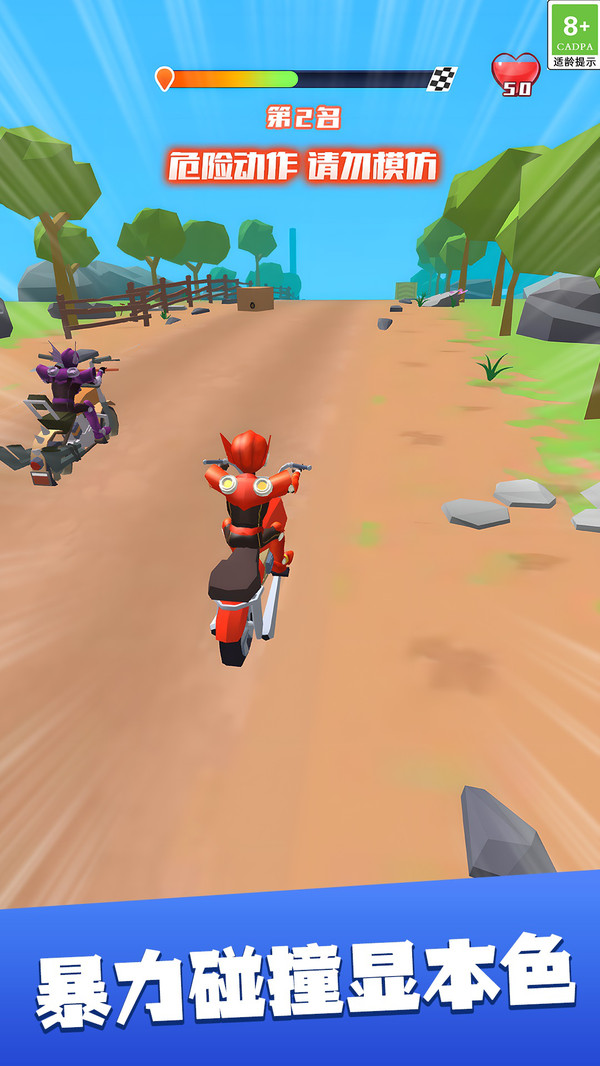 2、核心玩法融入暴力碰撞元素,不同于传统竞速仅比拼速度,可通过碰撞干扰对手,展现竞技的野性与爽感。