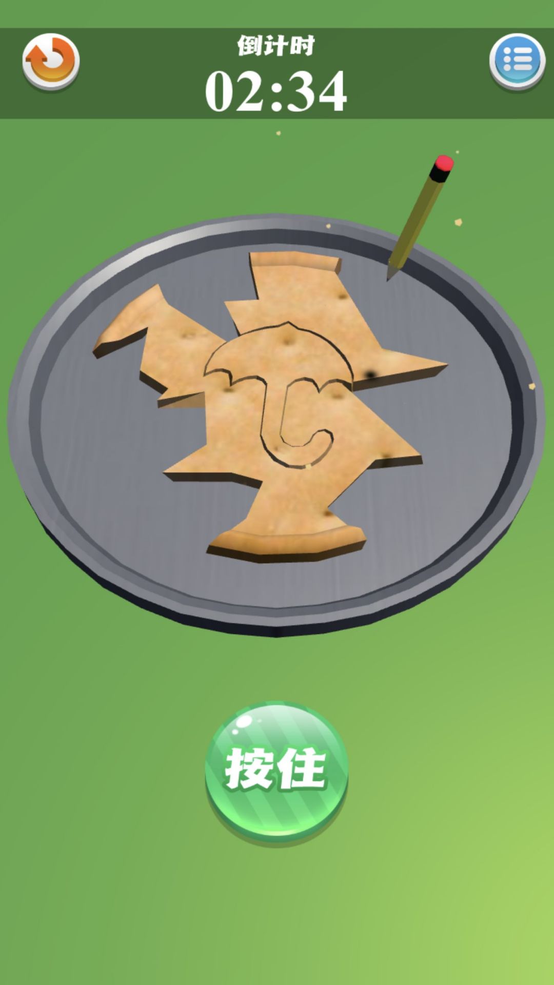 1.指尖精细操作:通过手指点击屏幕控制虚拟铅笔,沿糖饼图案边缘逐步剥离,需精准控制每次触碰的力度与范围。