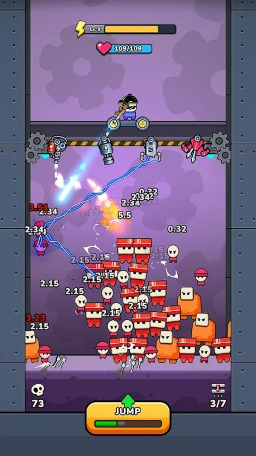 3、解锁新武器后根据其特性使用,如射速快的武器应对密集敌人,威力大的武器优先攻击血厚的精英敌人,提升效率。