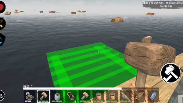 建造锤:用来扩展木筏,造成大船,具体作用后面会详细说明。合成:5木板,2废铁
