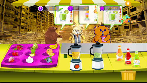 小熊果汁商店这是一款模拟经营类游戏,你需要好好的经营自己的果汁店哦,根据顾客们的不同需求来制作不同口味的果汁哦,游戏里采用了卡通的画风,不断的升级自己的店铺升级自己的设备来提升自己的效率,千万不能让你的顾客久等哦,喜欢的快来下载吧!
