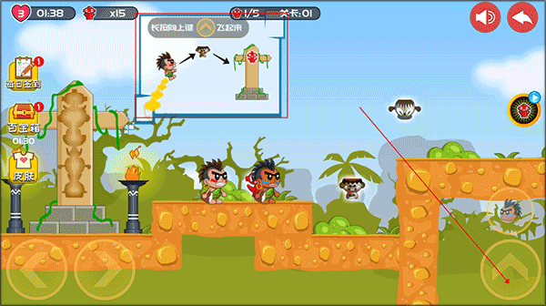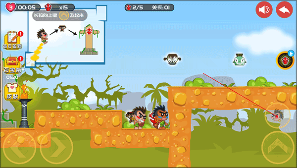 3、20个关卡融合了陷阱规避、野兽追击与食人族干扰等挑战,搭配Q版画风与滑稽音效,营造出轻松欢快的冒险节奏。