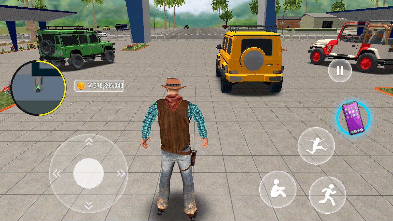 2、操控角色靠近吉普车后点击车门图标即可进入驾驶舱启动引擎。