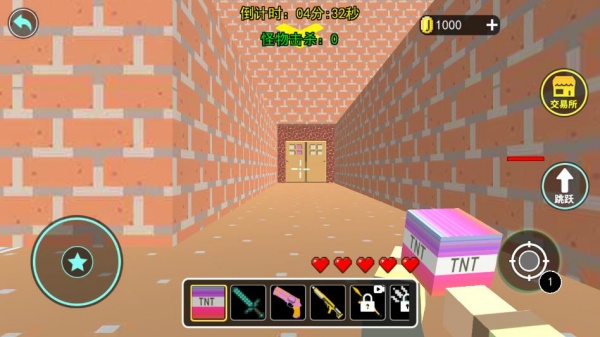 3、在游戏过程中,留意倒计时和怪物击杀数,合理利用 TNT、武器等道具,遇到交易所可及时交易资源,善用跳跃功能躲避障碍或敌人。
