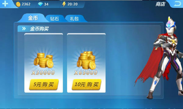 钻石购买的物品分为五种,分别是橙色装备礼包,橙色变身器礼包,橙卡礼包,终极经验礼包,以及万能碎片礼包。