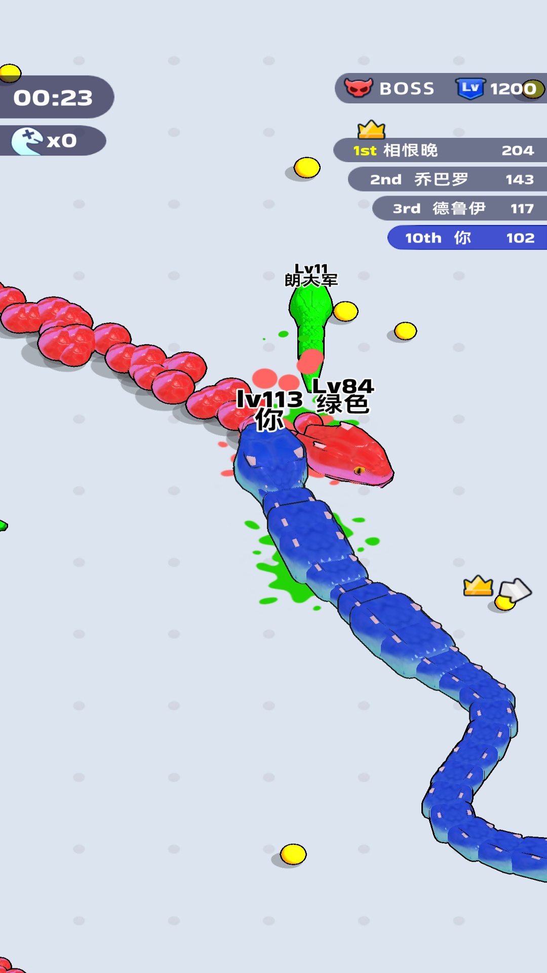 3.战术空间争夺:利用加速技能突袭弱小目标,或通过迂回走位规避大型蛇群的围剿,在攻防转换中寻找制胜机会。