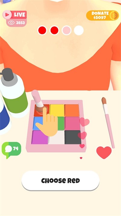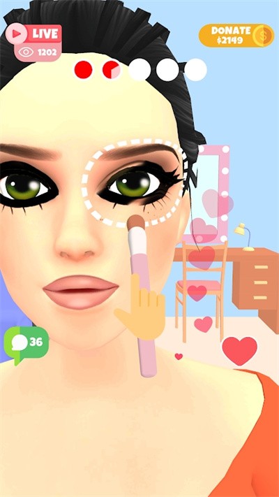 3、继续为绿眼睛女孩完成刷子化妆步骤,观察观众和捐款数据变化。