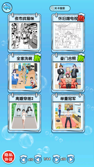 1、在关卡选择界面,优先选择 “新”“热” 标签的关卡(如全家洗碗、怀旧蹭电视),这些关卡内容新鲜且玩法热门。