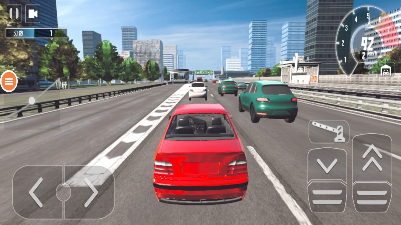 3.竞速模式聚焦于多车道路段超车对抗,需灵活判断车距与时机,在密集车流中连续超越对手达成胜利。
