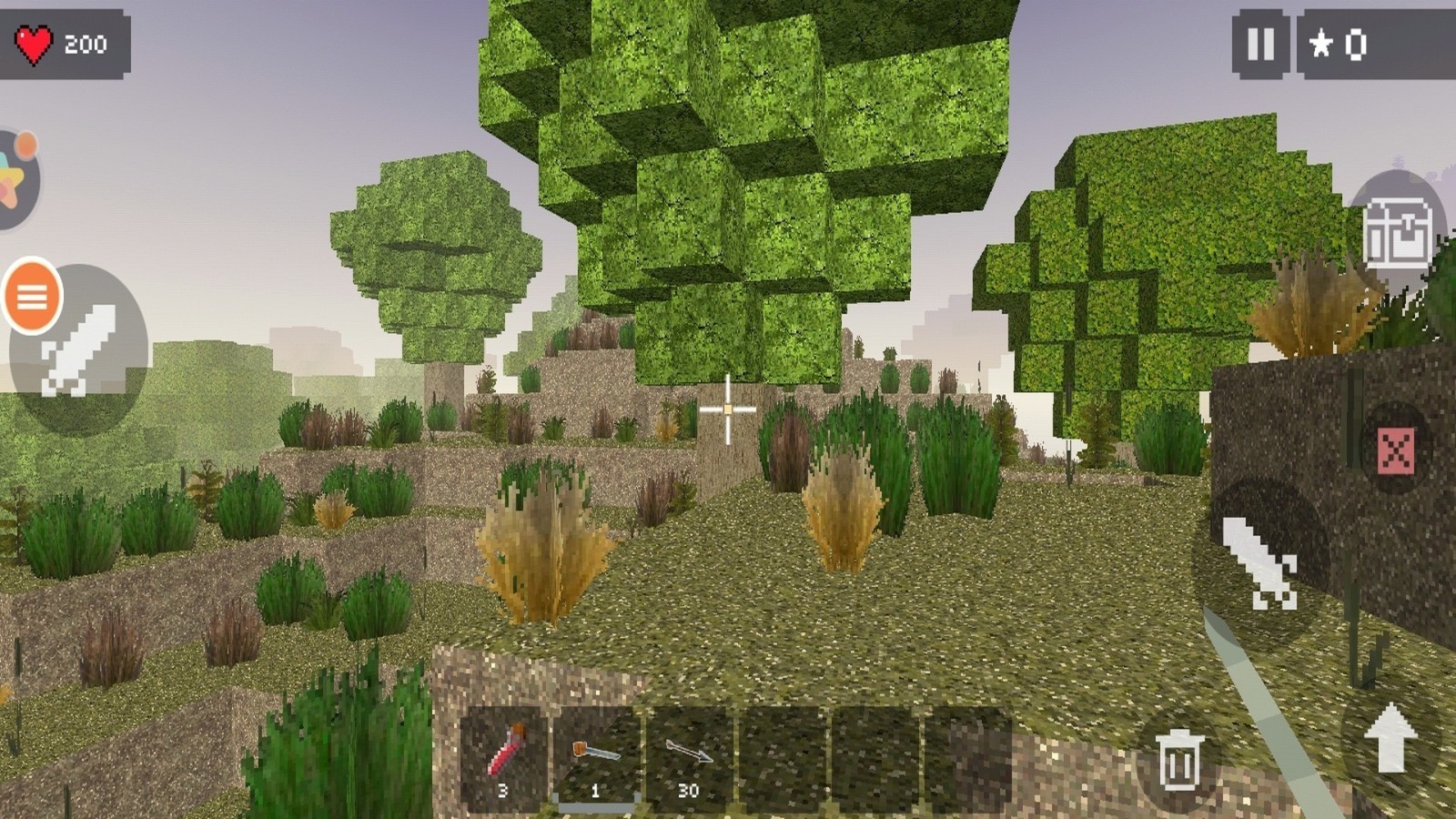 1、在空荡的像素世界中,先收集基础资源,再利用资源解锁或生成各类像素块,作为搭建物体的基础材料。
