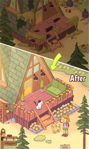 3、游戏还包含了多样的天气效果和动态的森林场景,让世界显得更加生动,你可以打造温馨田园风、奇幻森林风等不同主题的家园。