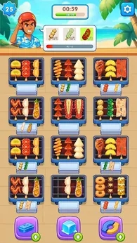 4.游戏拥有丰富的进度系统,记录着玩家从烤串新手到排序大师的成长轨迹,完成订单获得金币,可用于升级厨房设备、解锁新食材和特殊工具。