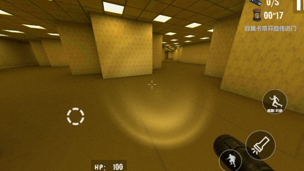 3、选择"逃离后室"模式后,将置身于昏暗密室,需要手持武器躲避木棍人的追捕。