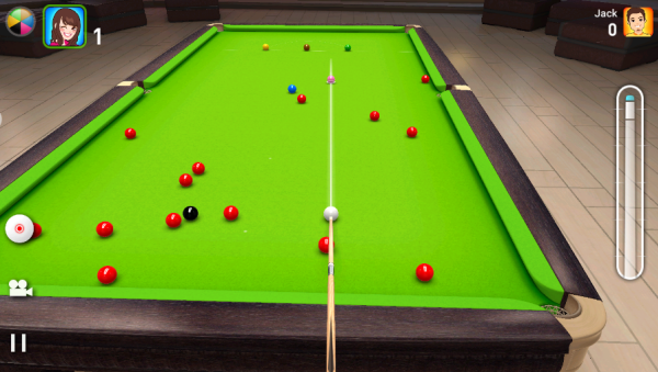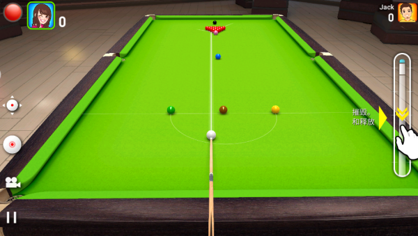 3、将白球摆放在理想位置后,使用球杆控制白球撞击其他色球入袋。